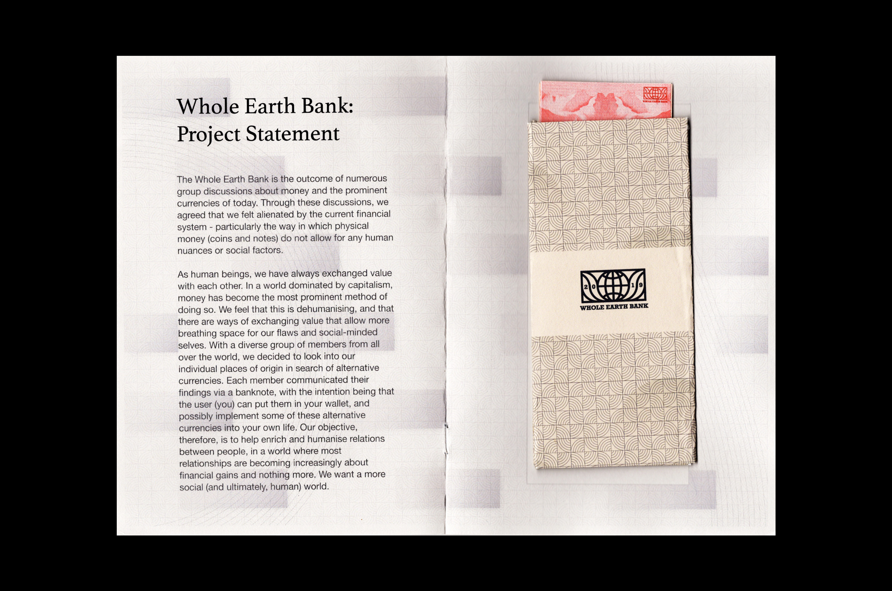 All the banknotes were then compiled into a collaborative leaflet named “the Whole Earth Bank”.