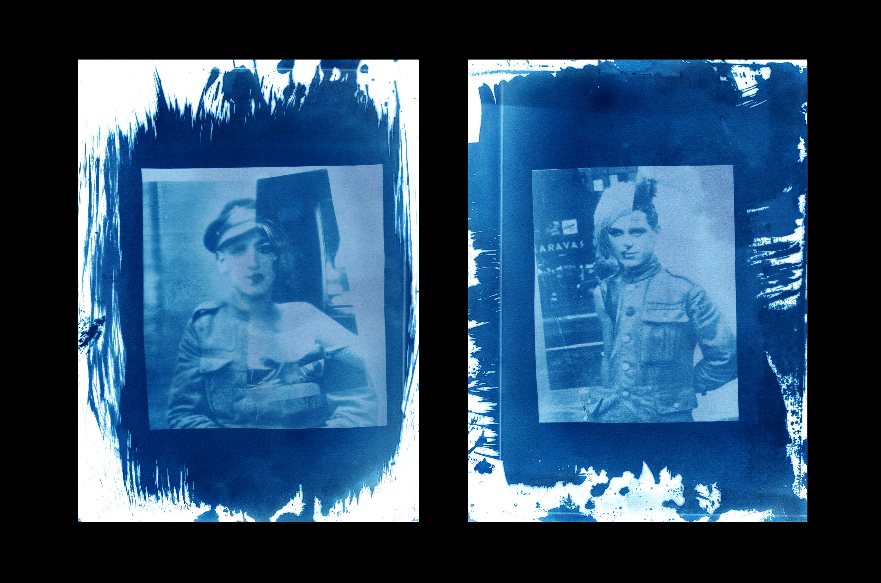 The juxtaposition of soldiers faces with ‘18th century prostitutes’ and ‘70’s drag queens of Boston’ creates powerful connotations.